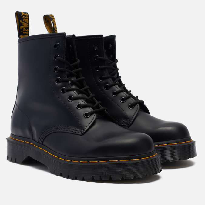 Высокий силуэт. Верх из премиальной кожи. 8 пар металлических люверсов. Петелька на заднике. Стабилизационная вставка в пяточной области. Контрастная строчка. Технология сшивания Goodyear Welt. Износостойкая резиновая подошва AirWair.