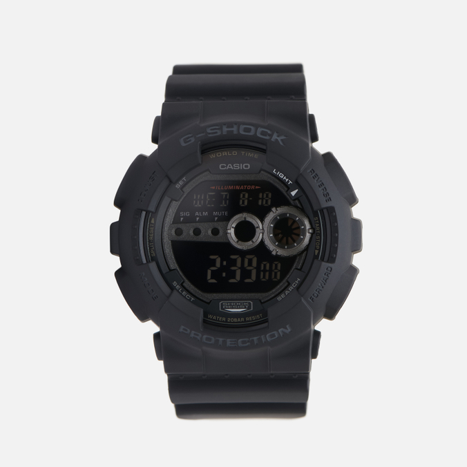 Линейка G-SHOCK. Противоударный пластиковый корпус. Пластиковый браслет. Кварцевый механизм. Жидкокристаллический дисплей. Светодиодная подсветка. Секундомер. Сплит-хронограф. Таймер обратного отсчета. Мировое время. 5 будильников. Автоматический календарь. Водозащита 200 WR. Минеральное стекло.
